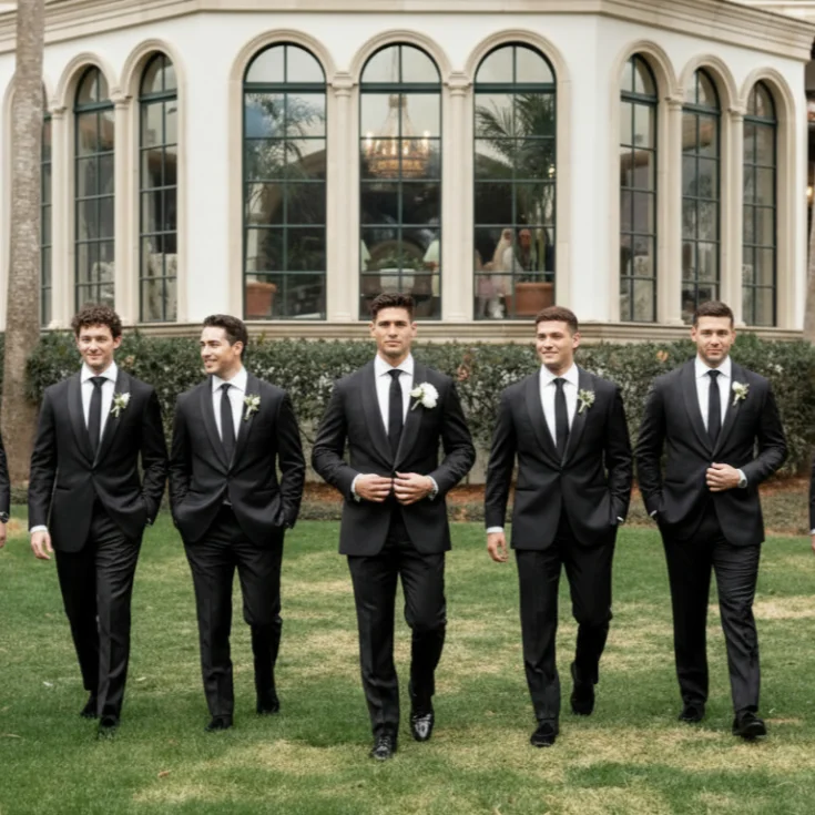 Coordinate bespoke suits for groomsmen and family, creating a polished, elegant look for your special day.