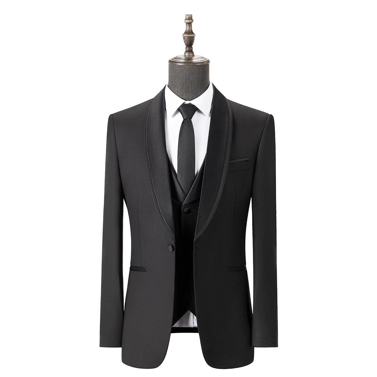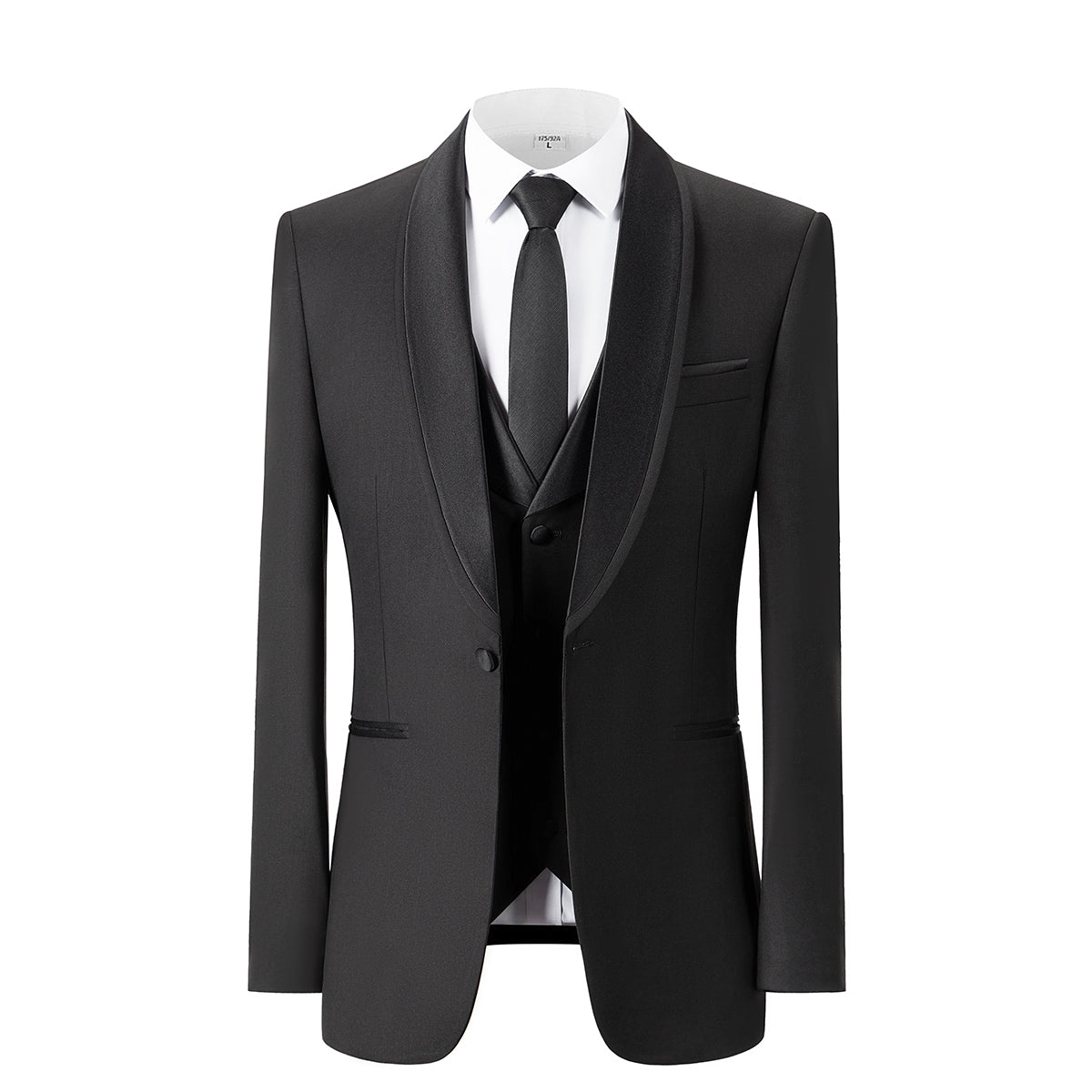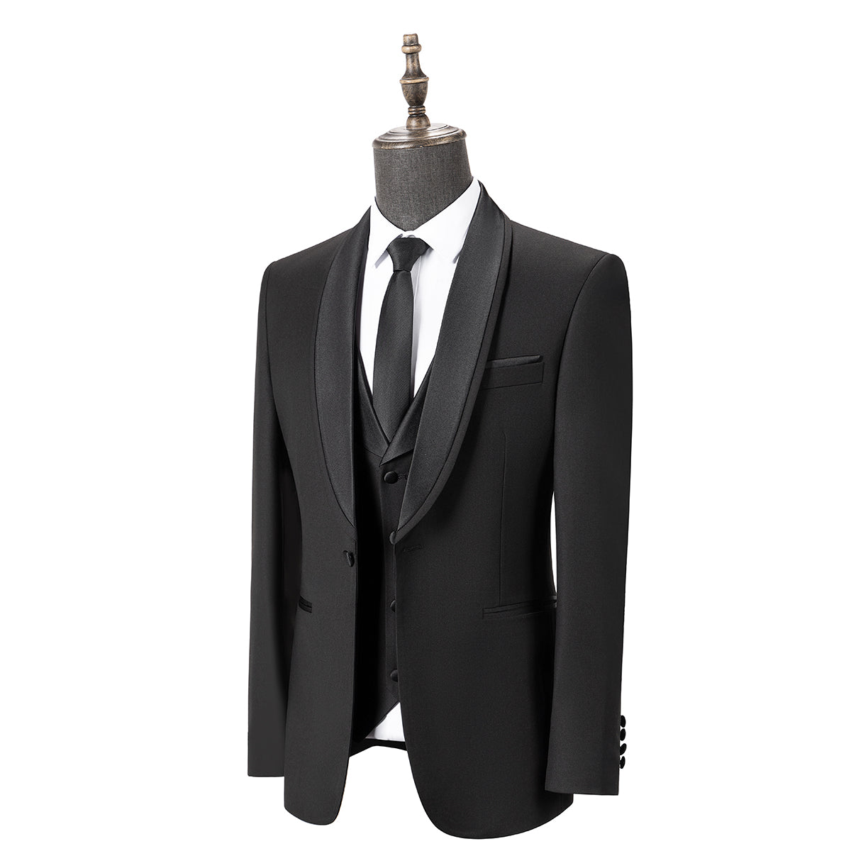 Bllmen Black 3 Pieces Mens Suit Shawl Lapel Tuxedos ST004