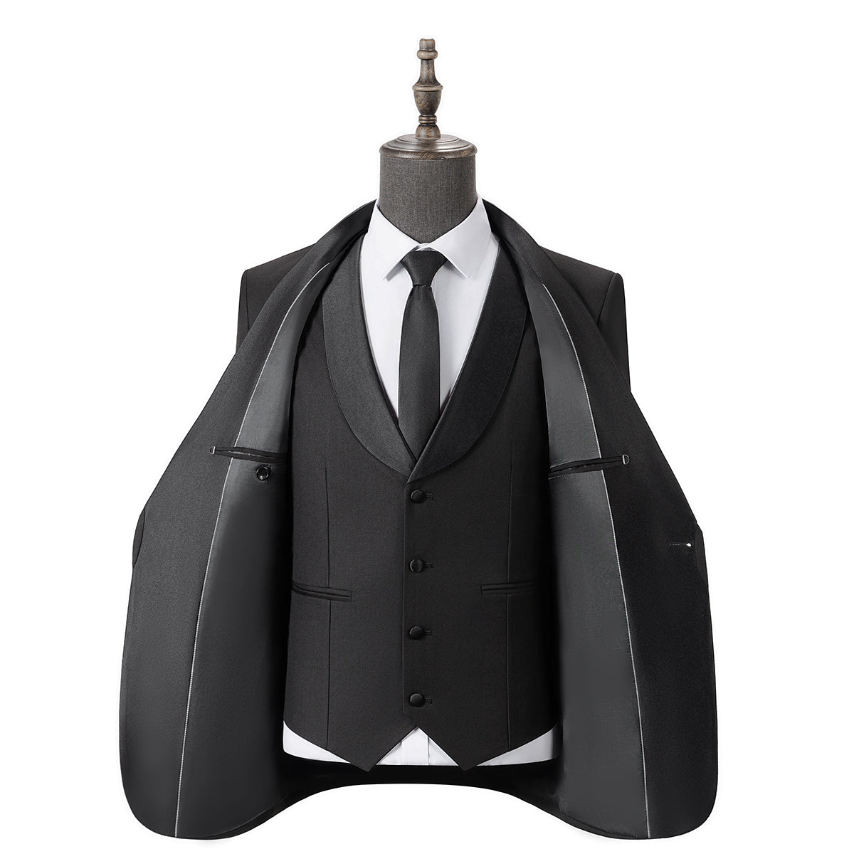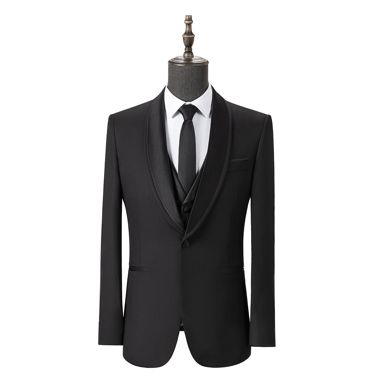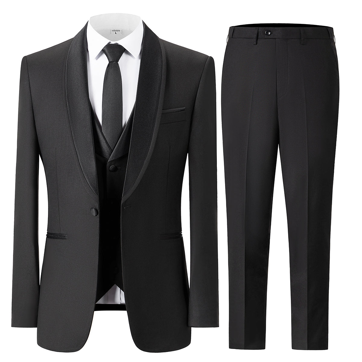Bllmen Black 3 Pieces Mens Suit Shawl Lapel Tuxedos ST004