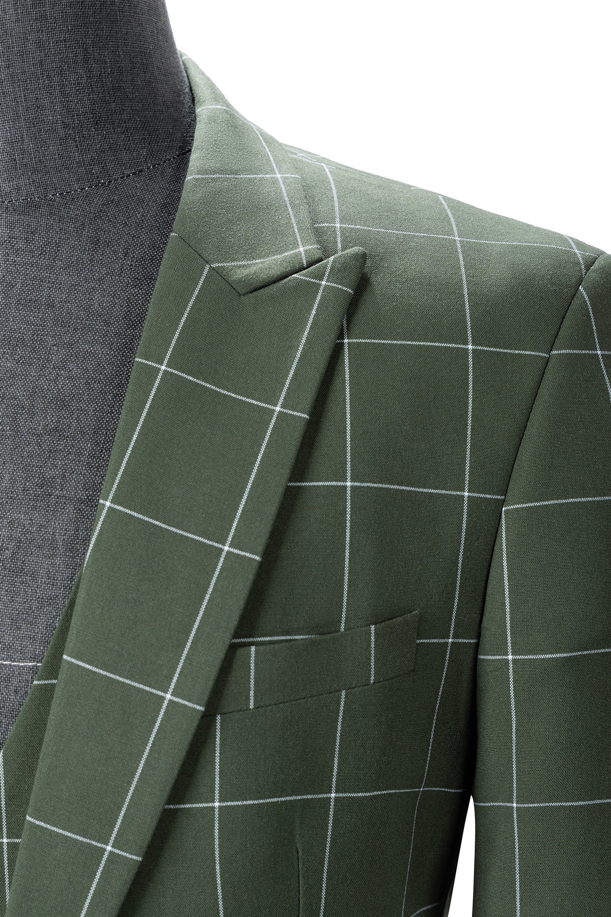 Bllmen Olive Green 3 Pieces Mens Suit Peak Lapel Tuxedos ST017