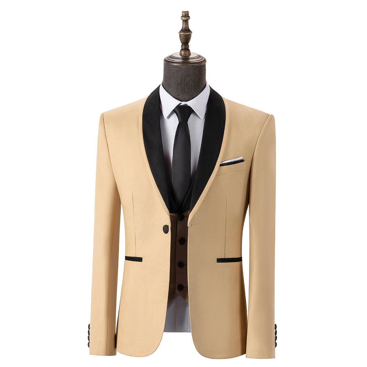 Bllmen Champagne 3 Pieces Mens Suit Shawl Lapel Tuxedos ST004
