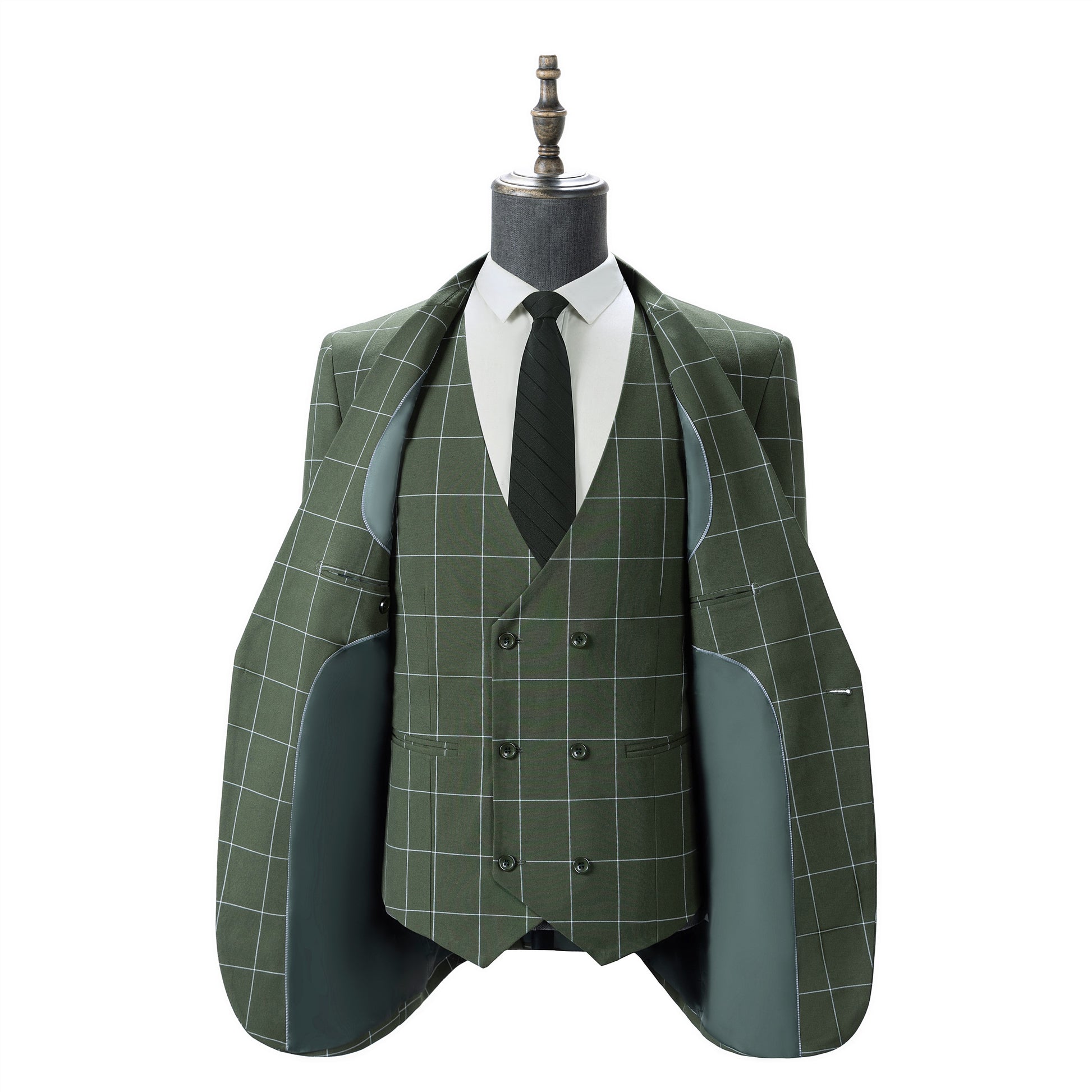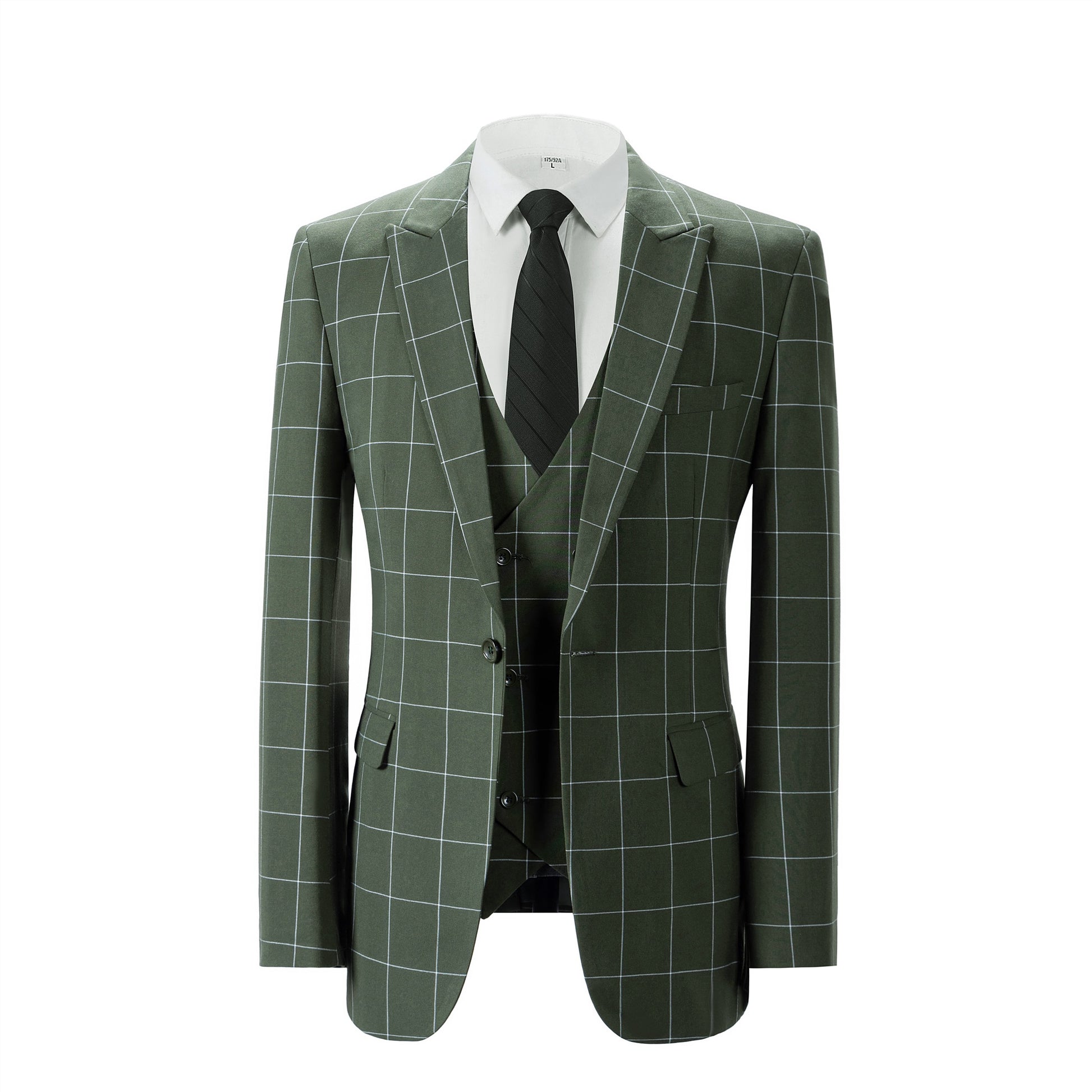 Bllmen Olive Green 3 Pieces Mens Suit Peak Lapel Tuxedos ST017